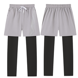 Pai-filho Camadas Duplas 2 em 1 Calças De Corrida Calças De Compressão Atlética Baselayer Workout Legging com Bolsos